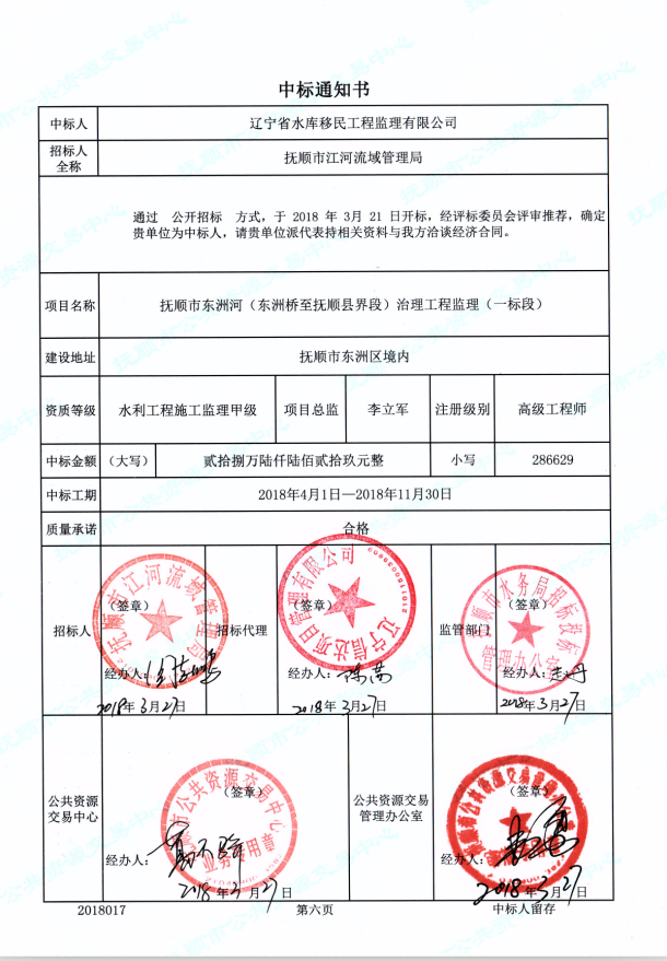 遼寧省水庫(kù)移民公司中標(biāo)撫順市東洲河(東洲橋至撫順縣界段)治理工程監(jiān)理(一標(biāo)段)...